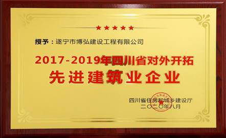 遂寧市博弘建設(shè)工程有限公司(以下簡稱“博弘建設(shè)”)經(jīng)過綜合評審,獲得“2017-2019年四川省對外開拓先進(jìn)建筑業(yè)企業(yè)”殊榮。